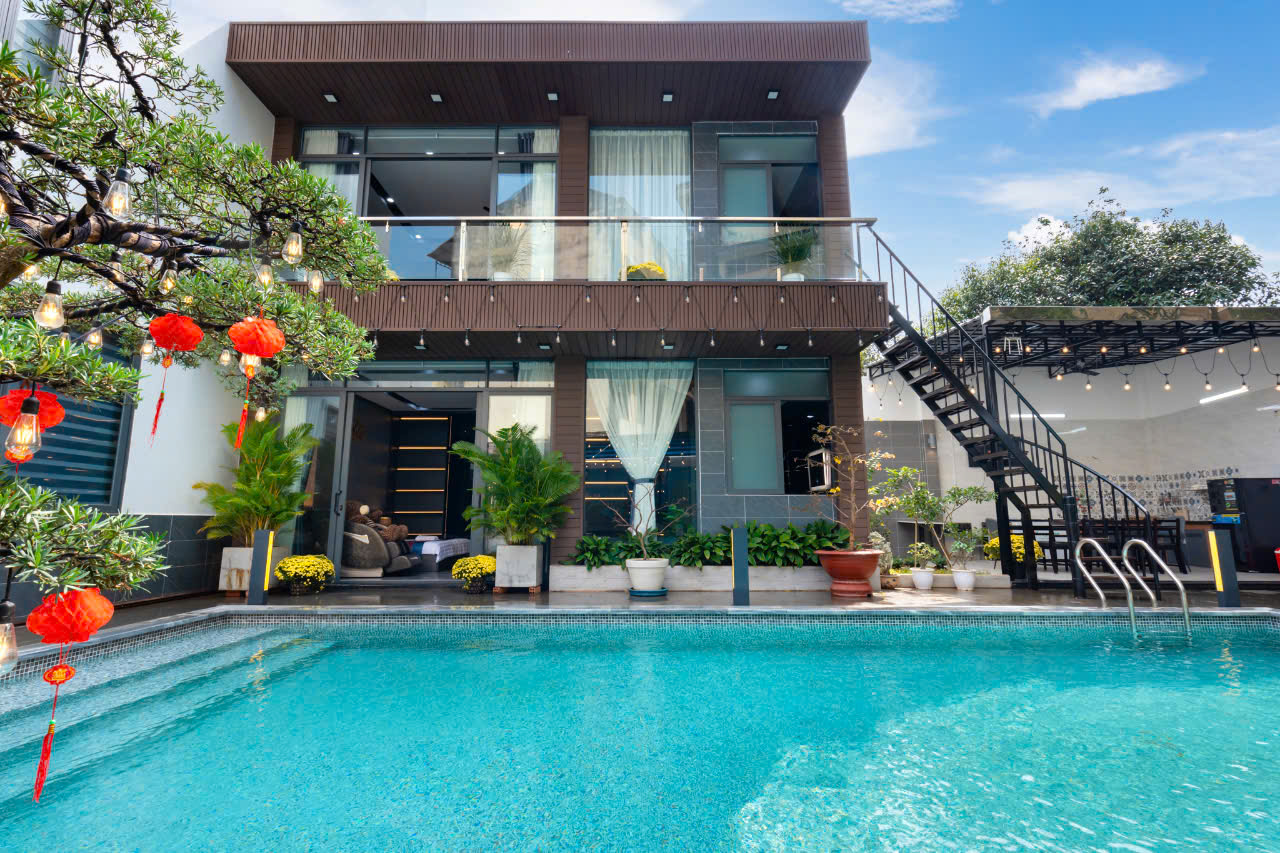 Villa Bãi Sau nhỏ gọn, hồ bơi riêng, karaoke, ghế massage.