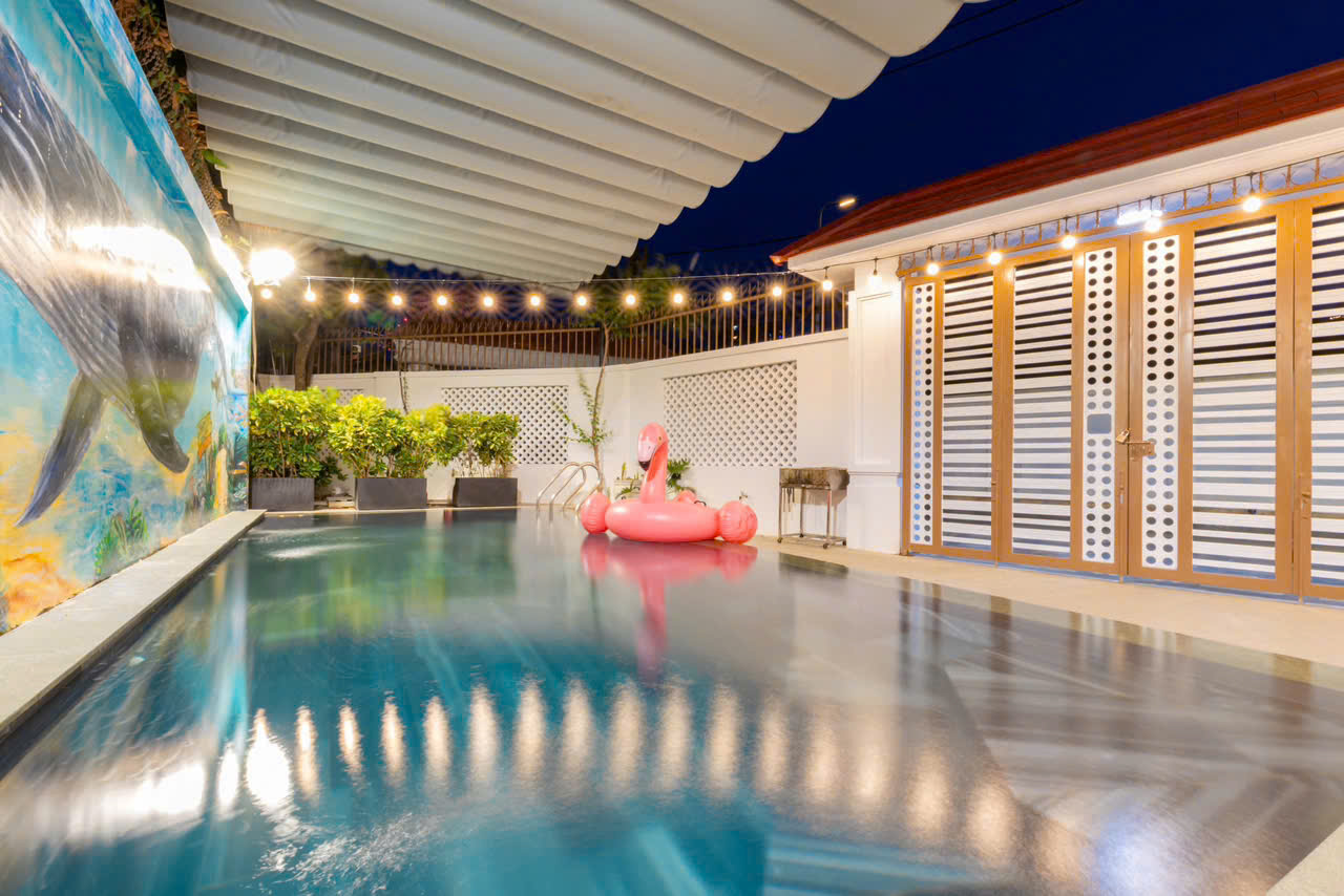 Villa bãi Sau rộng rãi, hồ bơi lớn, karaoke, bida, không gian nghỉ dưỡng phù hợp đoàn đông.